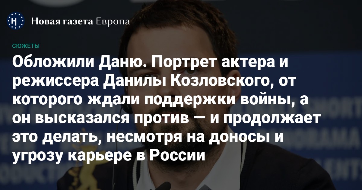 Обаятельный полный мальчик, начинавший карьеру в школьном сериале «Простые истины» и в «Улицах разбитых фонарей», выросший до работ у Германа-младшего и Алексея Учителя, ставший сам режиссером удачных и не очень киноработ, модный и успешный, — Данила Козловский и до войны не высказывался о вещах, которые его задевали. Но не производил впечатление человека, способного рисковать ради собственной позиции. Война всё изменила. «Новая газета Европа» представляет портрет человека, от которого ожидали фразу «всё не так однозначно», а он сказал «я против» и от этой фразы не отрекся.