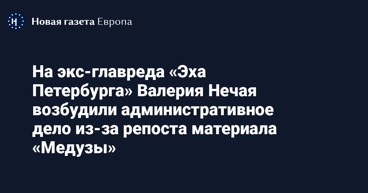 На экс-главреда «Эха Петербурга» Валерия Нечая возбудили административное дело из-за репоста материала «Медузы»