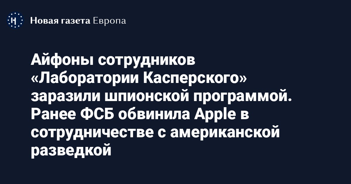 ФСБ обвинила компанию Apple в участии в разведывательной акции американской разведки через программу-вирус, сообщает ТАСС.