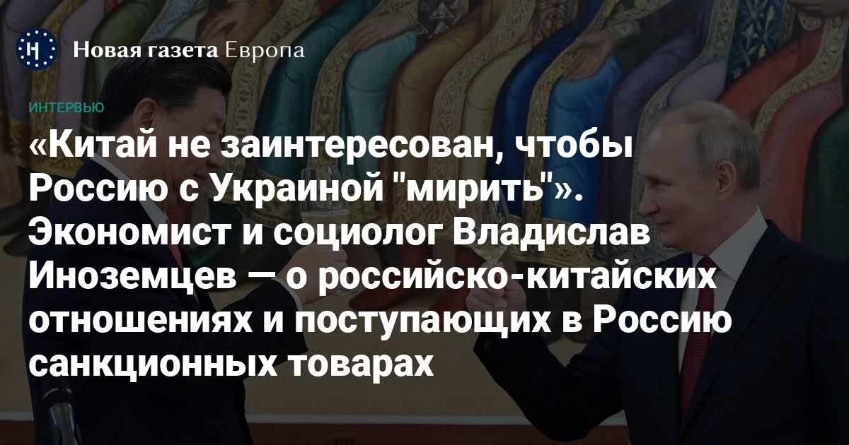 Экономист и социолог Владислав Иноземцев — о российско-китайских отношениях и поступающих в Россию санкционных товарах