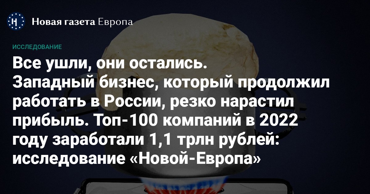 Западный бизнес, который продолжил работать в России, резко нарастил прибыль. Топ-100 компаний в 2022 году заработали 1,1 трлн рублей: исследование «Новой-Европа»