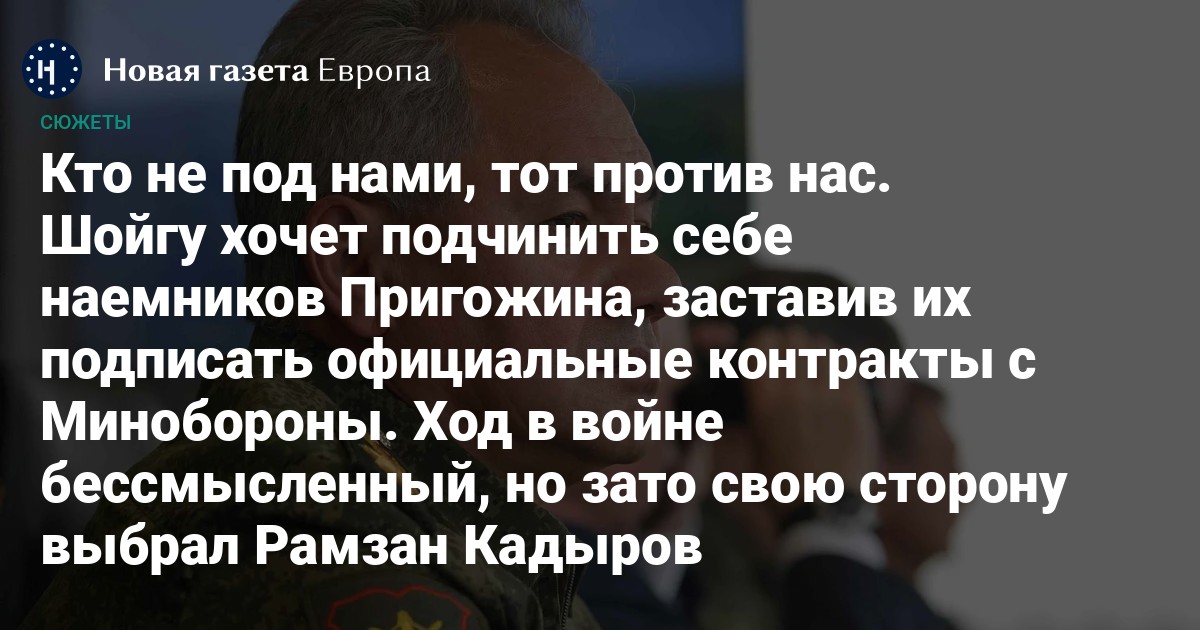 В качестве дополнительного аргумента, подтверждающего нежелание наемников заключать официальные договорные отношения с министерством обороны, ТГ-каналы, близкие к ЧВК «Вагнер», опубликовали пояснения руководителей подразделений частной военной компании. Сопроводив их таким дополнением от самого Евгения Пригожина: «Не могу не поделиться мнениями командиров ЧВК “Вагнер” по поводу решения Шойгу о переходе ЧВК “Вагнер” под Минобороны. При этом от себя могу сказать: был бы министр честный, смелый и грамотный — думаю, что все двумя руками бы перешли. Но в текущей ситуации, как видите, это невозможно».