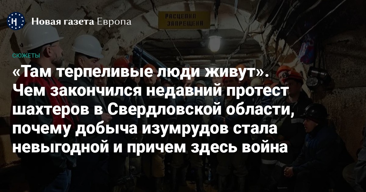 9 июня в Свердловской области завершилась забастовка шахтеров Мариинского прииска. Больше суток они протестовали против планов реконструкции предприятия, предполагающих консервацию изумрудной шахты и сокращение рабочих мест. Между шахтерами и работодателями достигнуто соглашение, которое вроде бы устроило все стороны. Управляющая компания «РТ-Капитал» пообещала рассмотреть вопрос о сохранении шахты. В соглашении, подписанном сторонами, предусмотрено также создание рабочей группы с участием представителей трудового коллектива, которая должна контролировать процесс реструктуризации предприятия. 15 июня такая рабочая группа действительно была создана. Однако независимые аналитики говорят, что на самом деле всё только начинается, потому что подписанное соглашение в текущих условиях невыполнимо.