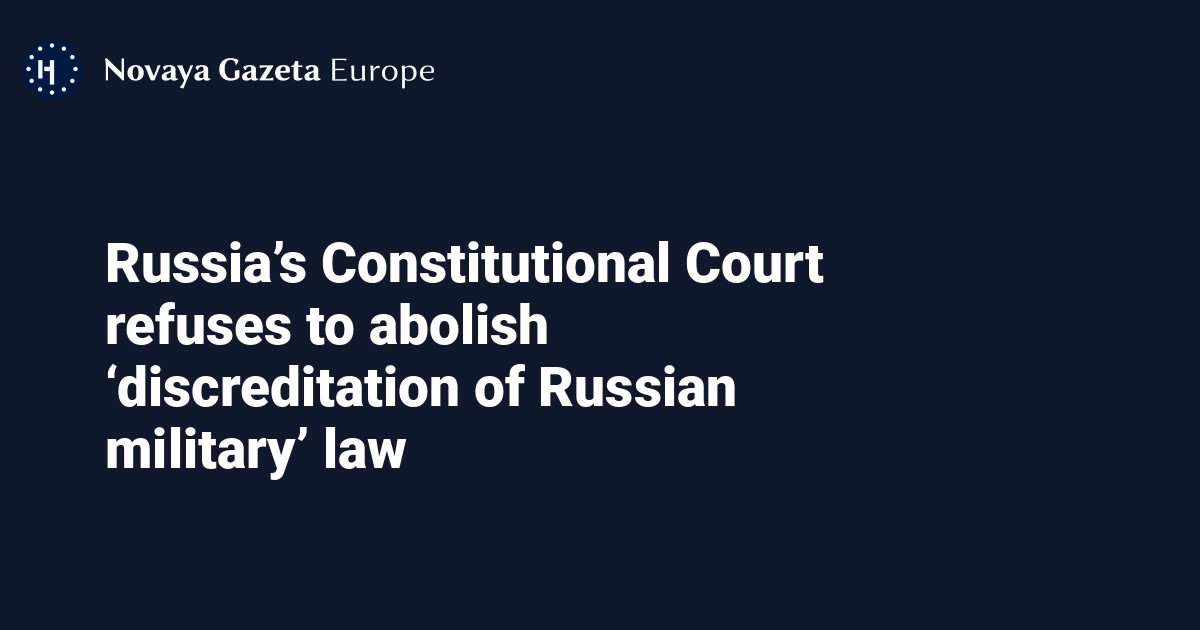 The Constitutional Court handed down the decision behind closed doors on 30 May but did not announce it. The rulings of the court say that the article on “discrediting” does not contradict the constitutional rights of Russian citizens, and it is necessary to maintain the morale of the Russian military, since criticism can have a “negative impact” on the armed forces and “assist forces that oppose the interests” of the Russian Federation.