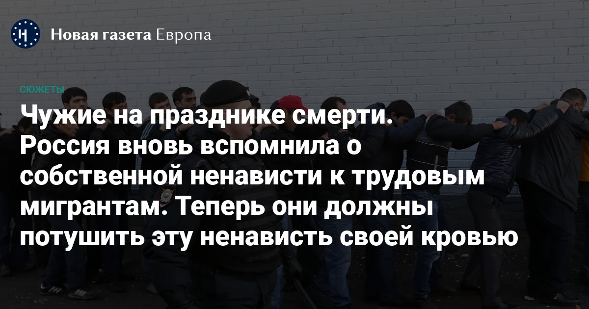 Россия вновь вспомнила о собственной ненависти к трудовым мигрантам. Теперь они должны потушить эту ненависть своей кровью