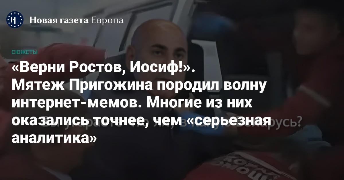 Иосиф Пригожин, к слову, отозвался на призывы «отдать Ростов» с пониманием: мемы снижают стресс. Не поспоришь, но психотерапией роль мемов не исчерпывается. Некоторые из них описывали ситуацию с бунтующей ЧВК, рвущейся к столице под медиа-прикрытием телеграм-каналов и горящей желанием отомстить за погибших / преданных на фронте товарищей, точнее многих аналитиков.