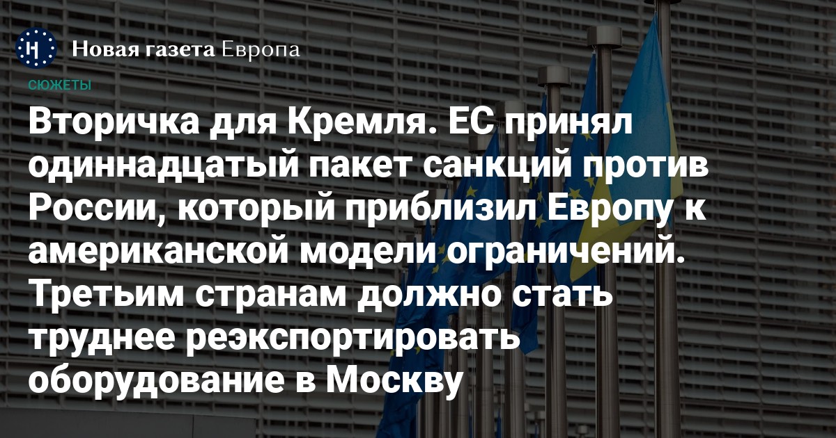 Тем не менее одиннадцатый санкционный пакет стал важной вехой в изменении отношения ЕС к политике вторичных санкций, отмечает в комментарии «Новой-Европа» Мари Дюмулен, руководитель программы Большой Европы в Европейском совете по международным делам (ECFR).