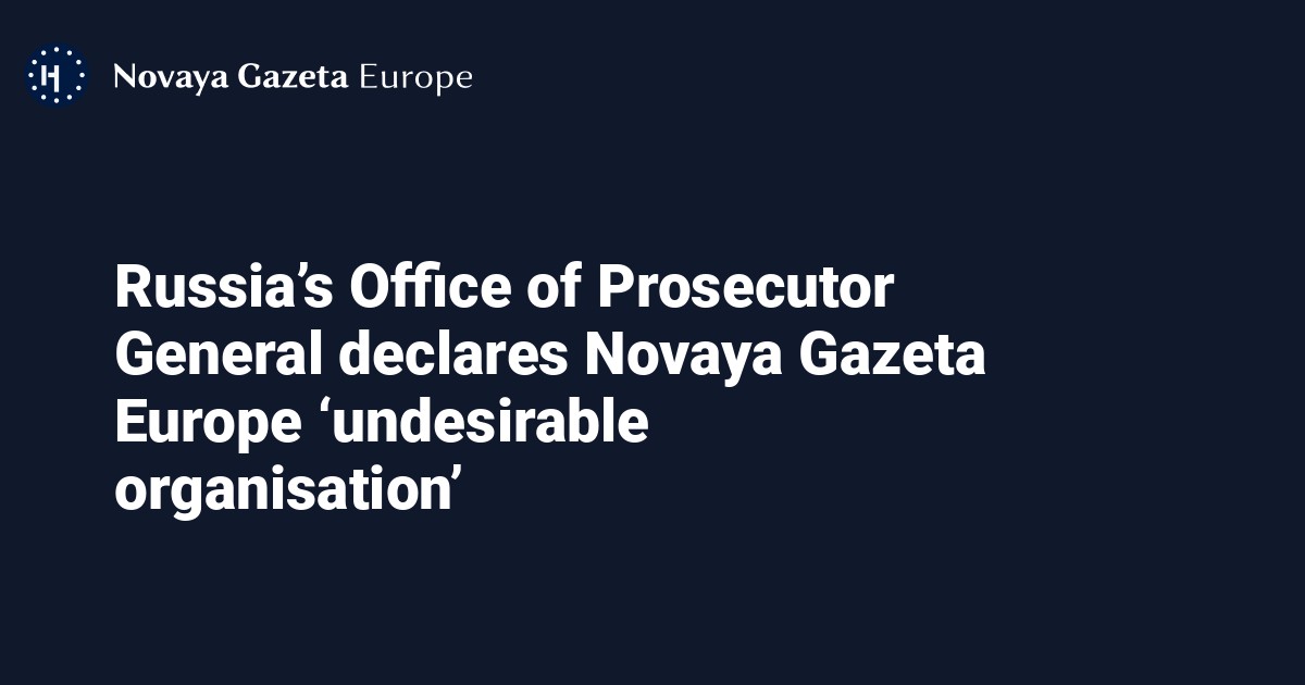 Russia’s Office of Prosecutor General has declared Novaya Gazeta Europe an “undesirable organisation”.