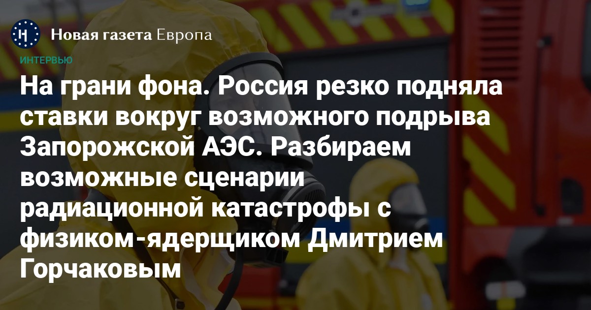 Украина утверждает, что Россия заминировала Запорожскую АЭС. В конце июня начальник ГУР Кирилл Буданов заявил, что взрывчатка размещена на охладителях энергоблоков. Генштаб ВСУ обвиняет Россию в подготовке провокаций на атомной станции. Россия такие же обвинения выдвигает против Украины и рассказывает о «грязной бомбе», которую украинцы вот-вот применят. Насколько опасна ЗАЭС в ее нынешнем состоянии, каких сценариев стоит опасаться, кто может пострадать в случае ядерной катастрофы, рассказывает эксперт атомного проекта экологического объединения Беллона Дмитрий Горчаков.
