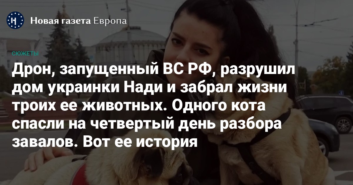 Если бы это было попадание просто в пустую квартиру, где не было ни одной живой души, конечно, у нас бы екнуло все. Но мы бы так не убивались и не переживали. Потому что жилье и вещи — это все наживное. Мы наших животных как людей воспринимали. У каждого был свой характер… Мы с мамой там пробыли до восьми вечера. Приехал мой муж из армии и брат, тоже из армии. Мы все воссоединились — но без них», — рассказывает Надя.