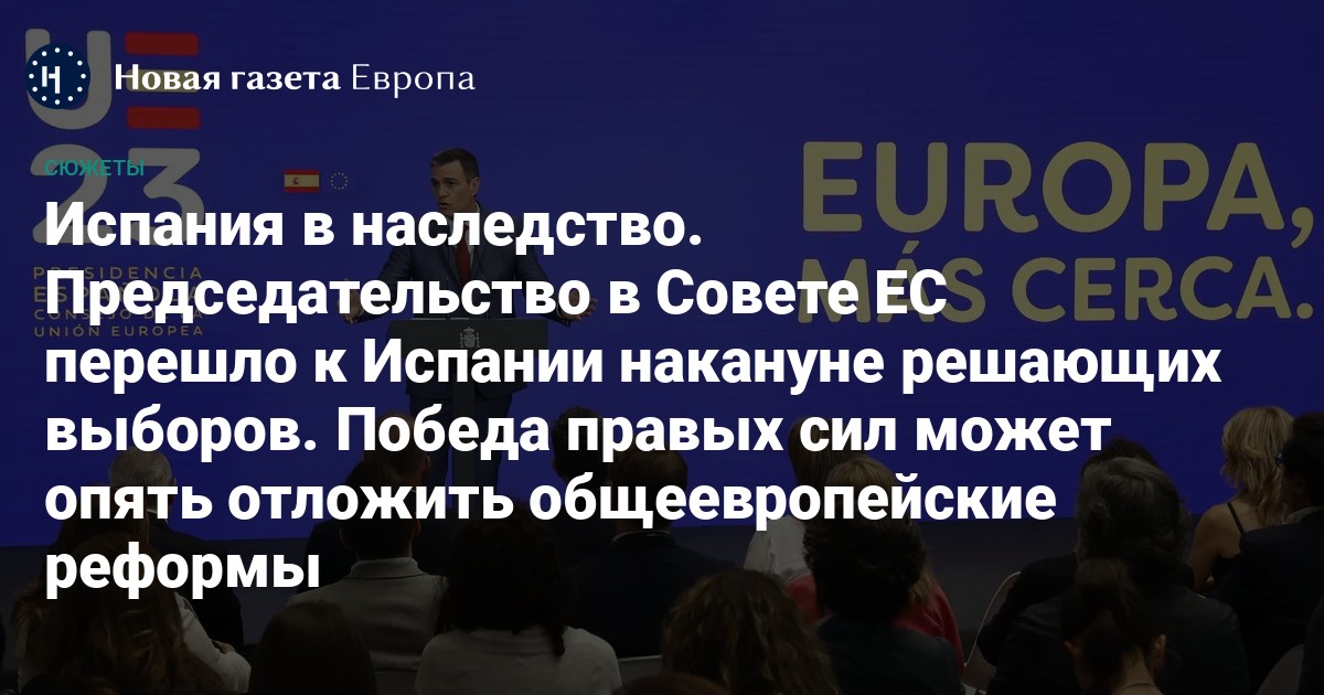 Поэтому председательство Испании — важный подготовительный этап перед неминуемыми политическими вызовами, с которыми Европа столкнется в следующем году. Но реализовать весь этот массив задач — как затянувшихся со времен председательства Швеции, так и амбициозно поставленных Испанией — может оказаться непросто не только из-за сжатых сроков председательства и последующего прихода Венгрии и Польши.