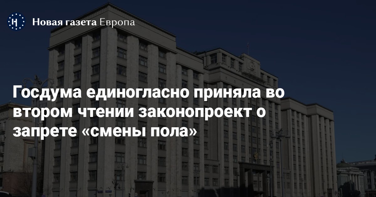 Госдума единогласно приняла во втором, основном чтении законопроект о запрете «смены пола», сообщается в телеграм-канале нижней палаты российского парламента.