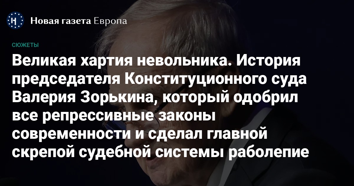 «Новая газета Европа» представляет портрет председателя Конституционного суда России.