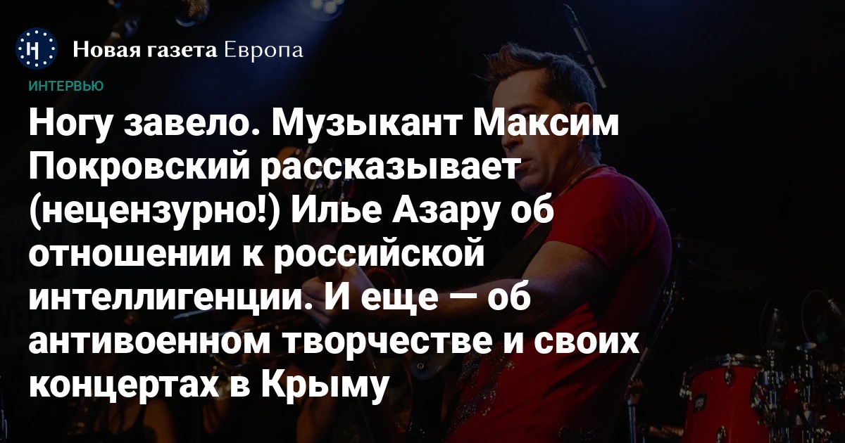 Музыкант Максим Покровский рассказывает (нецензурно!) Илье Азару об отношении к российской интеллигенции. И еще — об антивоенном творчестве и своих концертах в Крыму