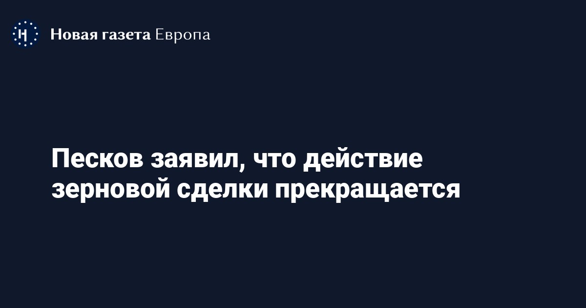 Действие зерновой сделки, заключенной в прошлом году между Россией, Украиной, Турцией и ООН, прекращено. Об этом заявил пресс-секретарь президента Дмитрий Песков.