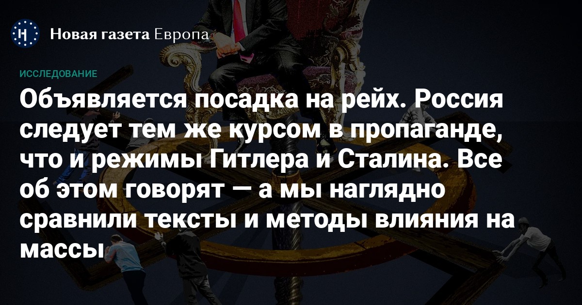 Россия следует тем же курсом в пропаганде, что и режимы Гитлера и Сталина. Все об этом говорят — а мы наглядно сравнили тексты и методы влияния на массы