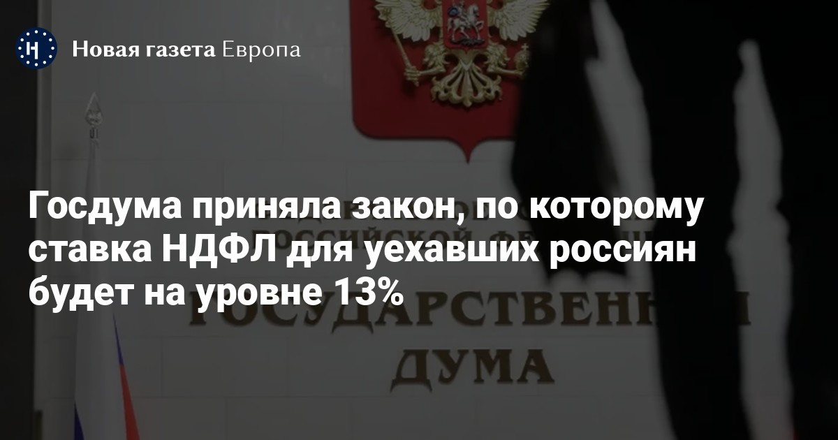 Госдума приняла закон, по которому ставка НДФЛ для уехавших россиян будет на уровне 13%