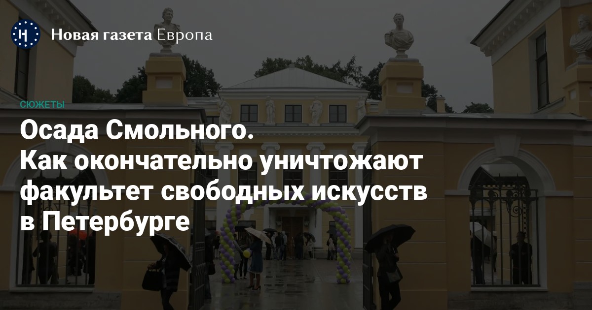 Всего факультет свободных искусств за период с 2021 по 2023 год покинуло около 30 человек, как подсчитал проект Save Smolny, организованный студентами. В числе уволенных преподавателей оказался и Майкл Фрис — американец, преподававший в вузе английский язык и занимавшийся академическими обменами с Бард-колледжем. Причиной увольнения послужило сотрудничество с нежелательной организацией. За потерей работы последовала депортация из России: в Санкт-Петербурге Майкл Фрис прожил десять лет, там остались его жена и ребенок. Композитора Владимира Раннева, преподававшего в Смольном, вынудили уволиться по собственному желанию: в декабре 2022-го он должен был ехать в Германию готовить театральную постановку и потому запросил у вуза разрешение на дистанционное преподавание — администрация не дала его. Просьба о предоставлении отпуска за собственный счет также осталась без внимания. Таких историй много.