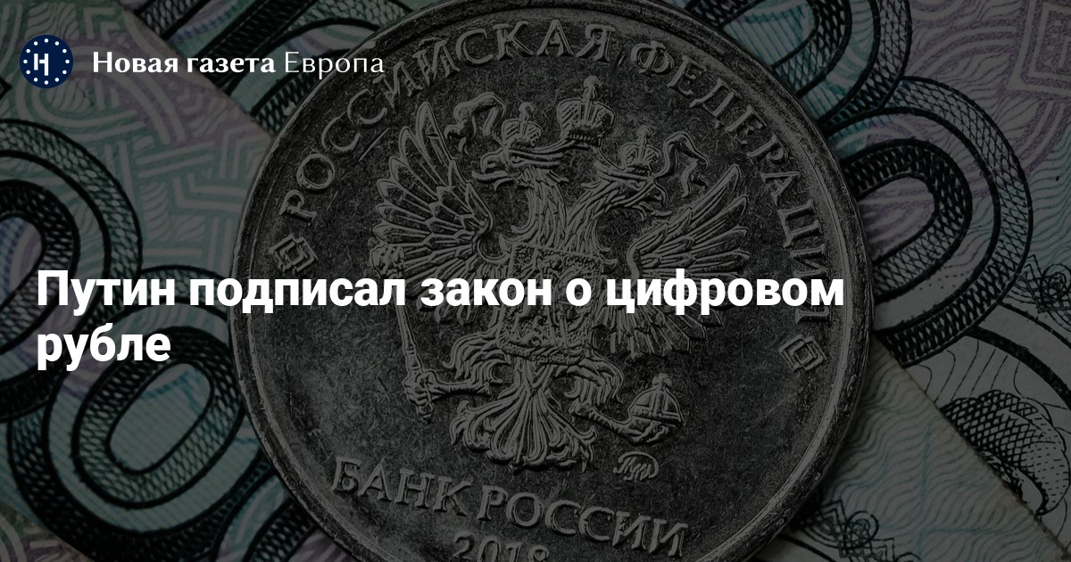 Президент России Владимир Путин подписал закон о цифровом рубле. Документ опубликован на официальном портале правовой информации.