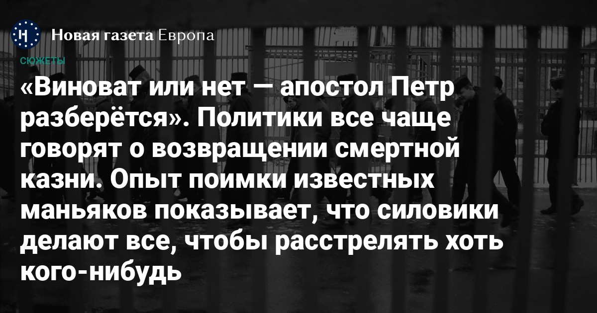 Политики все чаще говорят о возвращении смертной казни. Опыт поимки известных маньяков показывает, что силовики делают все, чтобы расстрелять хоть кого-нибудь