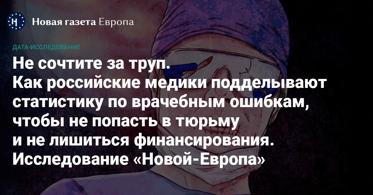 Если верить официальным данным, Россия — страна сверхточных диагнозов. Больше трети российских регионов в минувшем году показали аномально низкий уровень врачебных ошибок — всего 2%, в то время как во всем мире доля расхождений прижизненного и посмертного диагнозов уже много лет стабильно держится на уровне 10–20%. Разгадка этого феномена простая: за ошибки диагностики врачу в России грозит уголовное преследование, а медицинскому учреждению — штрафы и потеря финансирования. «Новая-Европа» рассказывает, как манипуляция медицинской статистикой в России приобрела массовый характер.