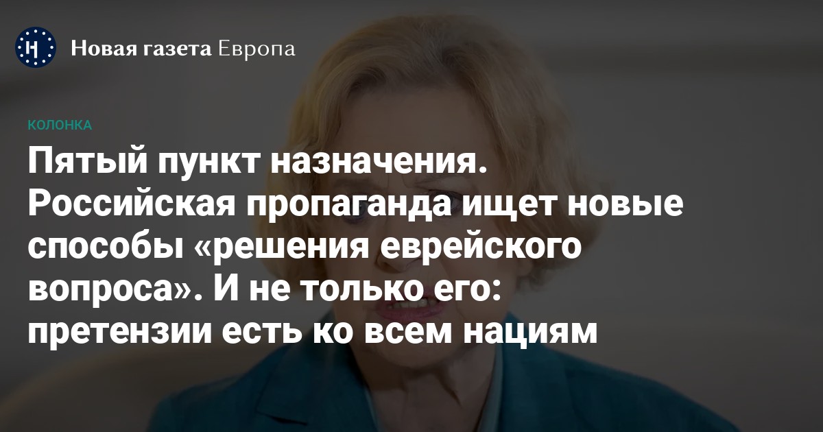 Это далеко не первый случай, когда пропаганда на разных уровнях обращается к теме еврейства вообще и «плохого еврейства» в частности. Даже сам президент Путин обвиняет украинского лидера Владимира Зеленского в том, что тот «позор еврейского народа» (а до этого Владимир Соловьев, сам подчеркивающий свое происхождение, отказал Зеленскому в еврействе).