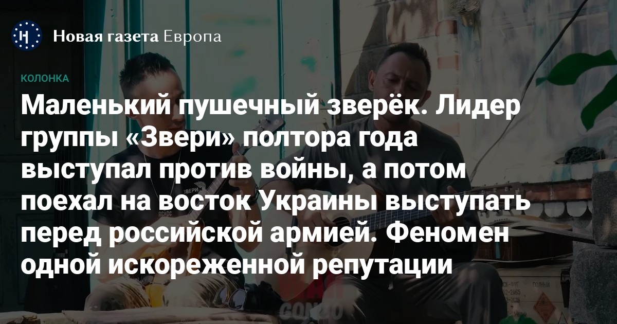 Военный пропагандист Семен Пегов распространил 21 августа видео, как в «ДНР» на позициях, близких к линии фронта, со своими песнями выступаем Роман Билык, больше известный как Рома Зверь, фронтмен группы «Звери». И Билык не только поёт: он фактически ведёт себя как полноценный участник боевых действий. Это вызвало огромный резонанс, поскольку до этого группа «Звери» решительно осуждала полномасштабную войну в Украине. Корреспондент «Новой-Европа» Вячеслав Половинко объясняет, почему новые взгляды «Зверей» даже хуже, чем просто одобрение войны популярными российскими артистами.