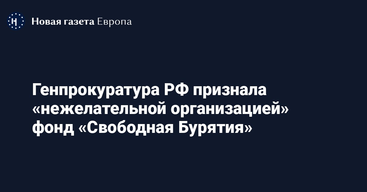 Генпрокуратура РФ признала «нежелательной организацией» фонд «Свободная Бурятия» (Free Buryаtia Foundation). Об этом сообщило само ведомство.