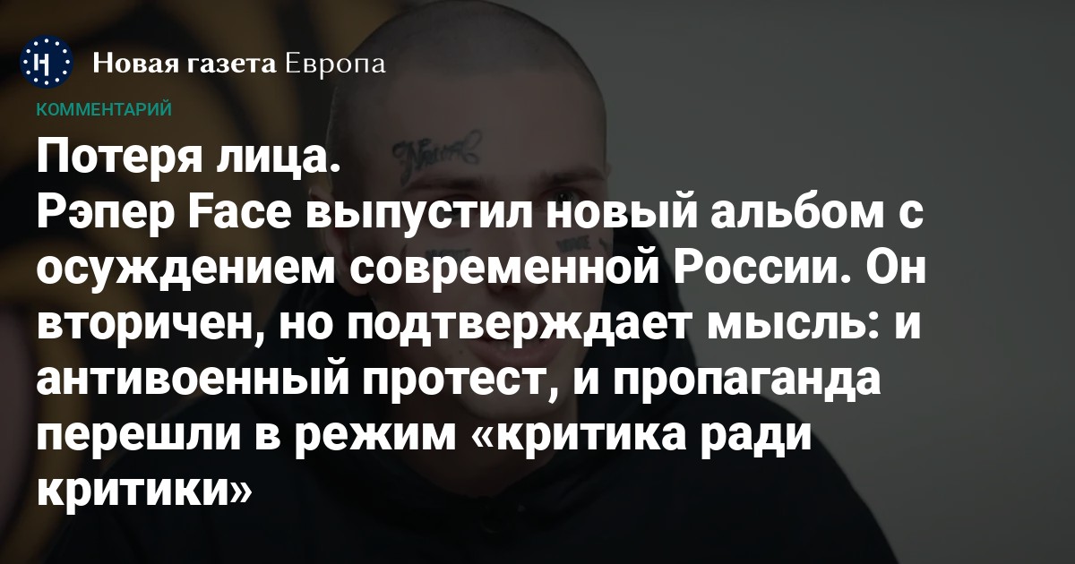 Чтобы понять, что хочет донести Face в своем новом рэп-высказывании длиной 22 минуты 35 секунд, альбом нужно послушать трижды. Иначе этот набор треков вас обманет. После первого прослушивания вам будет казаться, что это были самые бессмысленные 22 минуты 35 секунд в вашей жизни. После второго (особенно если параллельно посмотреть, как в ютубе, фигурально выражаясь, плюются от каждого трека специалисты по записи реакций на новые премьеры) — наоборот, что у вас были только что самые эмоциональные мгновения за всё то время, которое в вашей жизни занимает музыка. И только третий заход дает четкое представление о главной идее всего альбома.