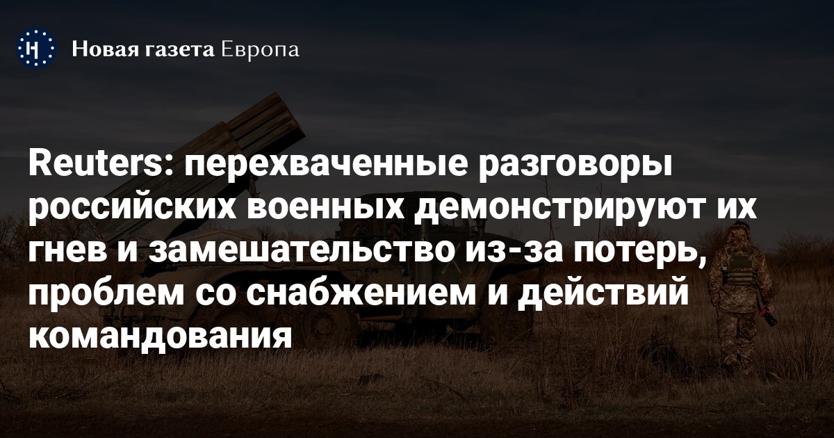 Перехваченные разговоры российских солдат, воюющих в Украине, демонстрируют их гнев и замешательство из-за серьезных потерь и проблем со снабжением и действий военного руководства. Об этом сообщает Reuters со ссылкой на источники в разведке Украины.