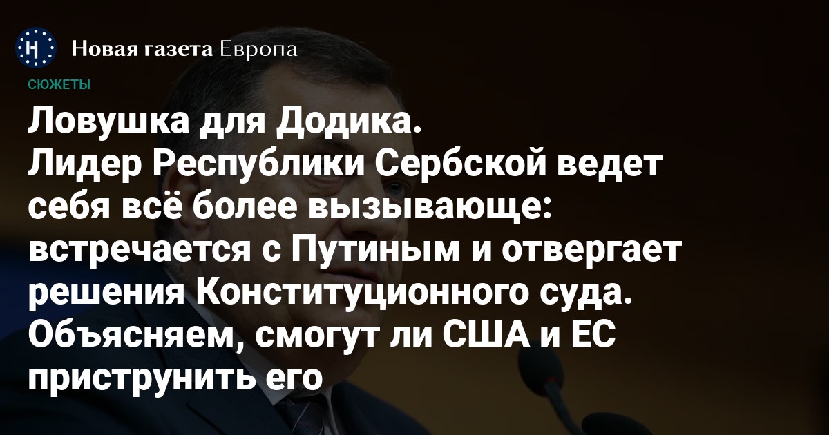 Лидер Республики Сербской ведет себя всё более вызывающе: встречается с Путиным и отвергает решения Конституционного суда. Объясняем, смогут ли США и ЕС приструнить его