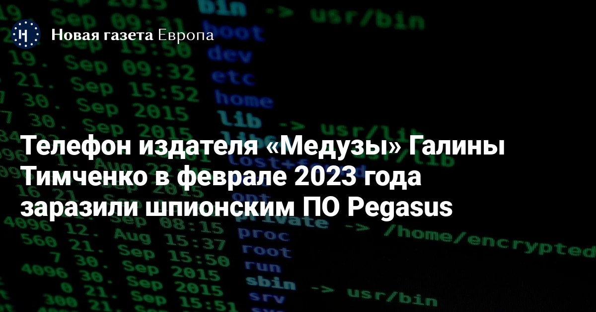 В феврале 2023 года телефон издателя «Медузы» Галины Тимченко заразили шпионским ПО Pegasus. Об этом сообщает «Медуза».