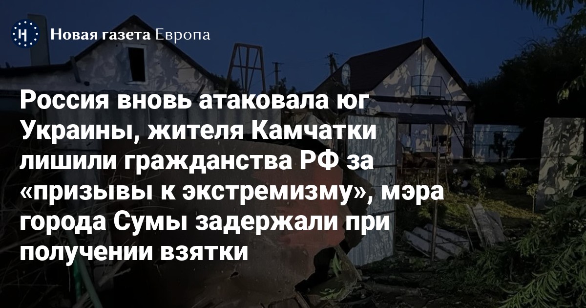 Россия вновь атаковала юг Украины, жителя Камчатки лишили гражданства РФ за «призывы к экстремизму», мэра города Сумы задержали при получении взятки