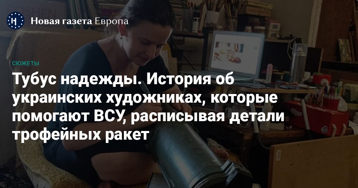 — Знаете, эти картины, можно сказать, — такие «бусы войны», — рассказывает Наталья. — В первые месяцы после полномасштабного вторжения было легко собирать деньги на помощь армии. Сейчас настало время давать человеку что-то взамен; мы рисуем на тубусах, и люди на аукционах получают свою частичку войны, а мы [за эти деньги] снова можем ремонтировать старые машины и покупать новые для батальона. Такой вот новый обмен.