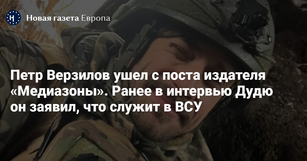 Петр Верзилов ушел с поста издателя «Медиазоны». Ранее в интервью Дудю он заявил, что служит в ВСУ