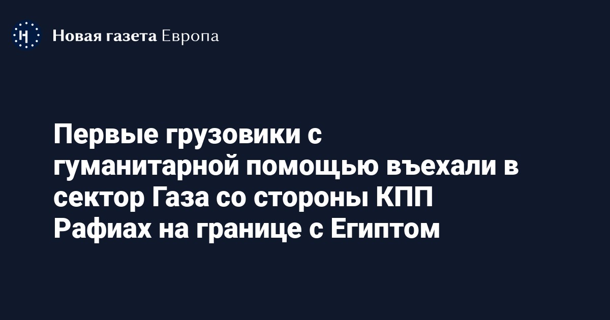 Грузовики с гуманитарной помощью начали въезжать в сектор Газа через контрольно-пропускной пункт Рафиах на границе с Египтом. Об этом сообщает Al Jazeera.