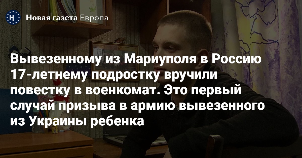 Вывезенному в Россию 17-летнему уроженцу Мариуполя Богдану Ермохину вручили повестку в военкомат в РФ. Об этом в беседе с украинским изданием «Грати» рассказала его адвокат Екатерина Бобровская.