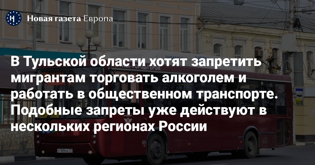 В Тульской области планируют в 2024 году запретить иностранцам работать в общественном транспорте и общепите. Ограничения на работу в такси и перевозках уже несколько лет действуют в нескольких регионах России.
