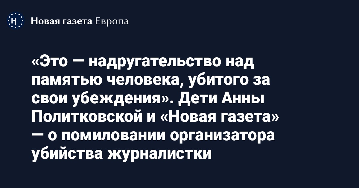 Дети Анны Политковской Вера и Илья выпустили совместно с редакцией «Новой газеты» заявление по поводу досрочного освобождения из тюрьмы Сергея Хаджикурбанова, который был осужден на 20 лет по делу об организации убийства Политковской. Мужчина отправился воевать в Украину.