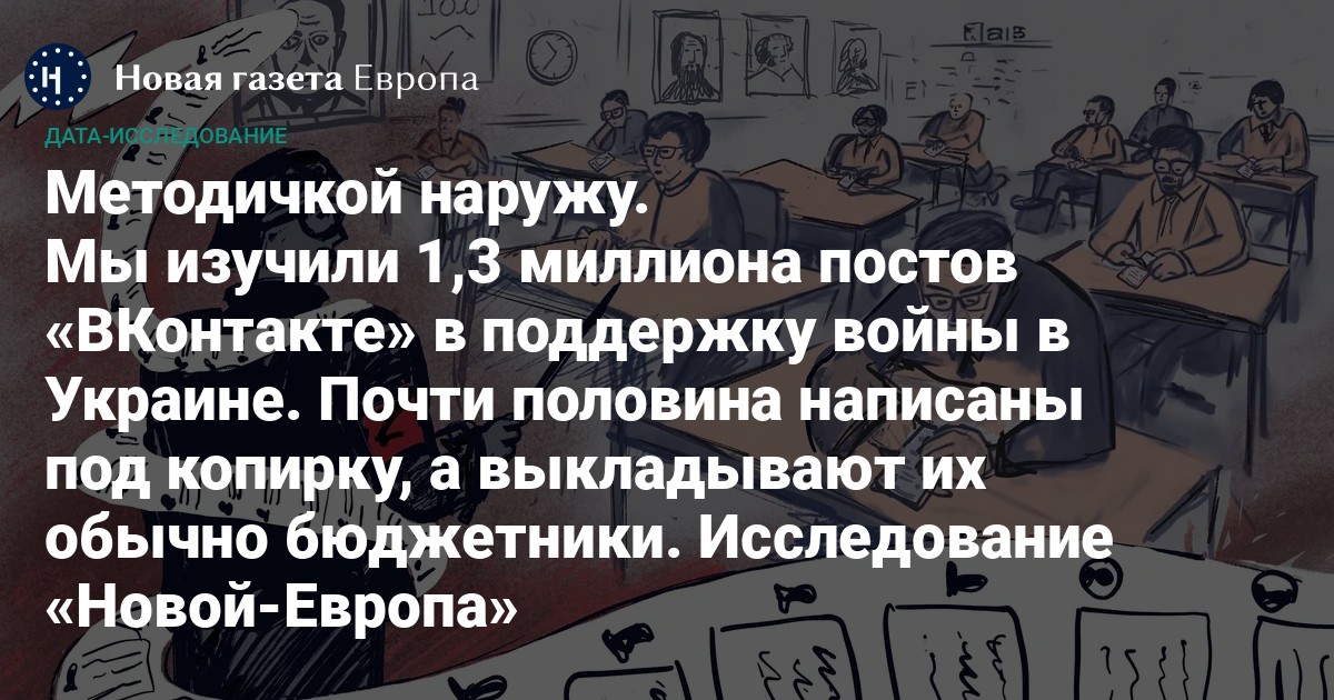 Мы изучили 1,3 миллиона постов «ВКонтакте» в поддержку войны в Украине. Почти половина написаны под копирку, а выкладывают их обычно бюджетники. Исследование «Новой-Европа»