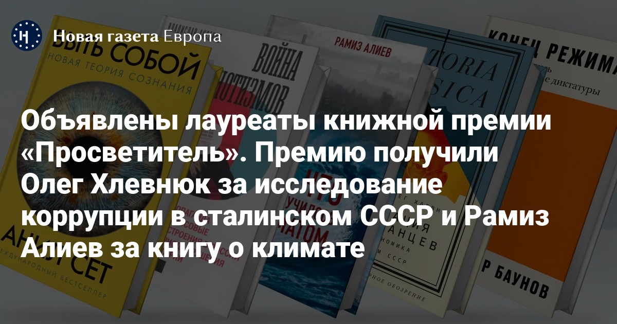 Премию получили Олег Хлевнюк за исследование коррупции в сталинском СССР и Рамиз Алиев за книгу о климате