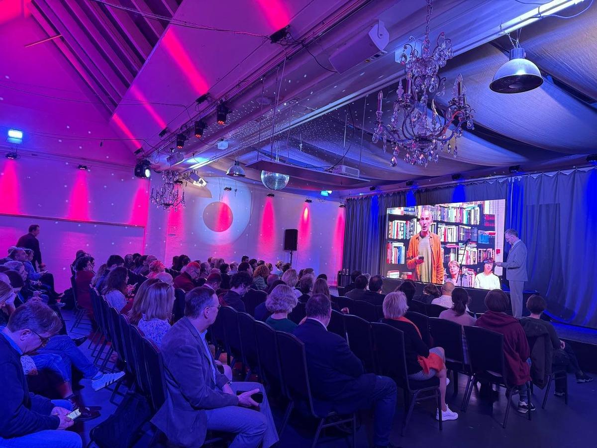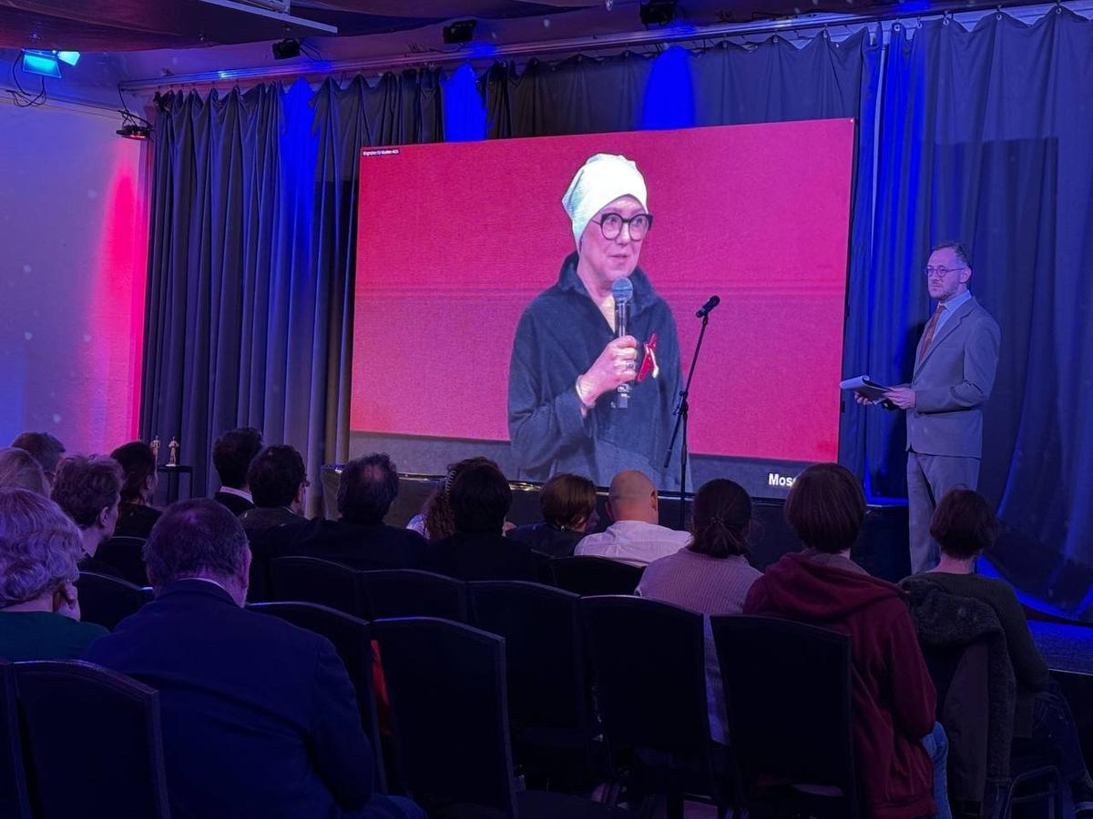 Телемост во время вручения премии «Просветитель» в Берлине. Фото: Ксения Гапченко для «Новой газеты Европа»