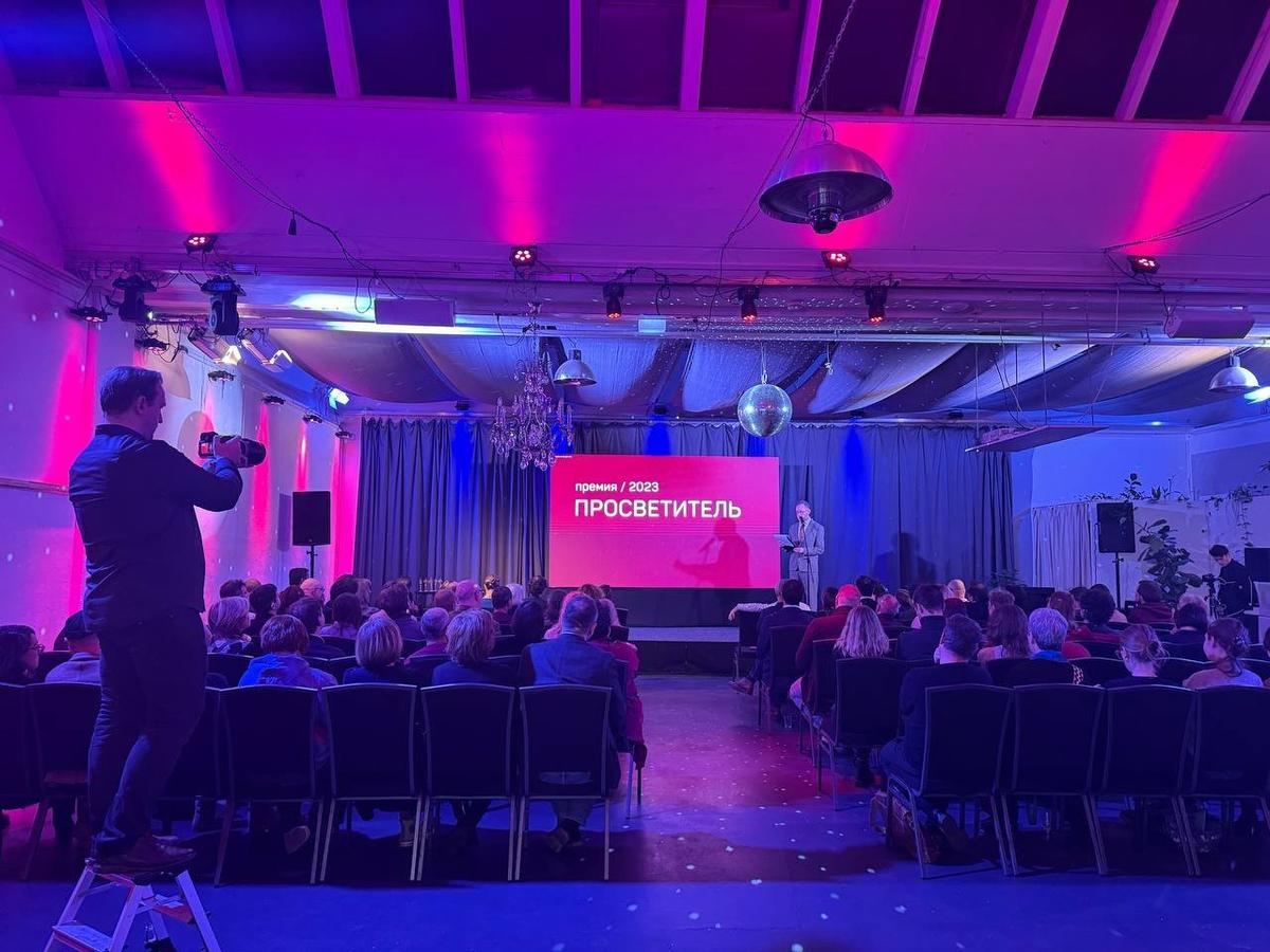 Во время телемоста между Москвой и Берлином объявили лауреатов книжной премии «Просветитель», основанной Дмитрием Зиминым и Фондом некоммерческих программ «Династия».