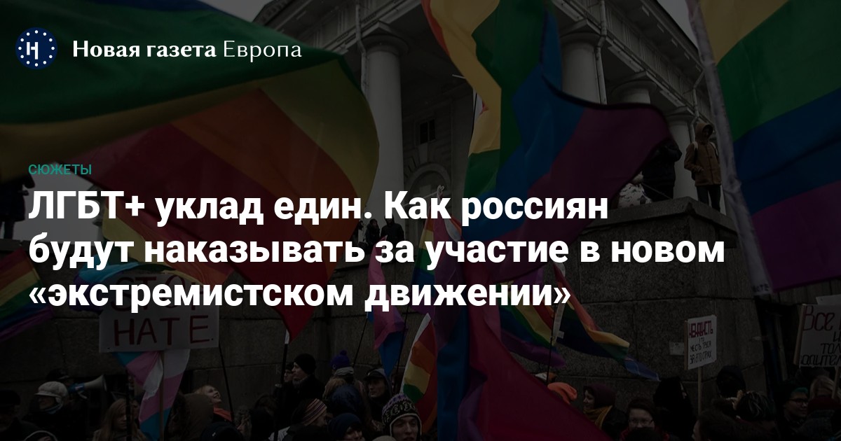 «Тогда Генпрокуратура указывала, что субкультура АУЕ — "это хорошо структурированная, управляемая организация экстремистской направленности". А "представители этого неформального объединения причастны к подготовке массовых беспорядков, поэтому их деятельность представляет реальную угрозу жизни и здоровью граждан, обществу и государству". Такие формулировки возможны и в случае с ЛГБТ сообществом», — говорит собеседник «Новой-Европа».