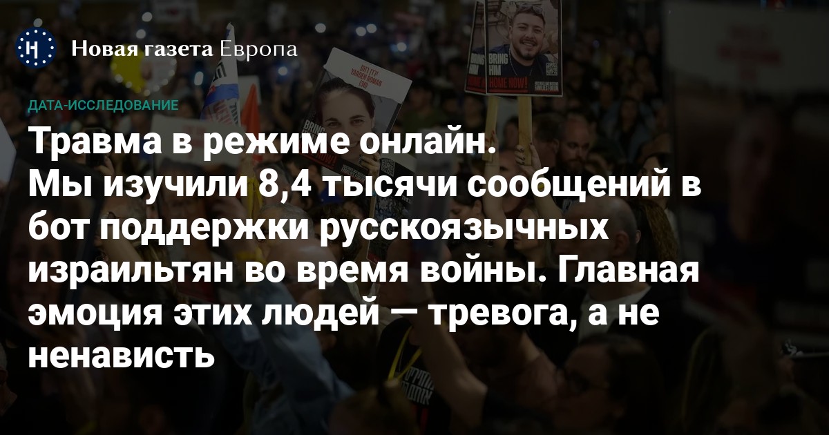 Мы изучили 8,4 тысячи сообщений в бот поддержки русскоязычных израильтян во время войны. Главная эмоция этих людей — тревога, а не ненависть