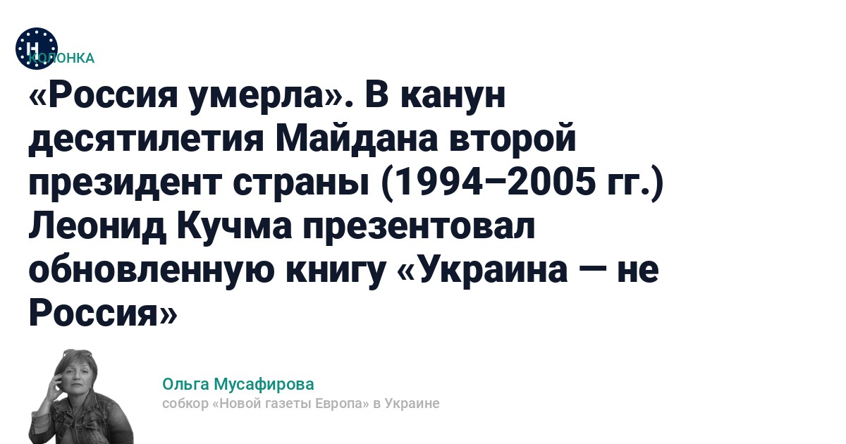 Обложка книги тоже отредактирована. От оригинала, где Леонид Кучма в расцвете лет, в белой рубашке с галстуком, сидит на лугу, полном васильков, не осталось и следа. Нынешний фон — дымное небо и руины. В рукавице пожарного — обгоревший экземпляр «Украины — не России». Фото документальное. Его сделал 14 января 2023 года, в Днепре, на набережной Победы, у того самого многоэтажного дома, куда ударила российская Х-22, Игорь Гетало, начальник оперативно-координационного центра ГУ Госслужбы по чрезвычайным ситуациям. Кто-то из жильцов — возможно, заводчан «Южмаша», — хранил ее в домашней библиотеке… Воспоминания о Днепре и родном заводе, выпускавшем ракеты, всегда были для Кучмы-политика ностальгически-светлыми. Это и в них прилетело. Жизнь круче любой литературы.