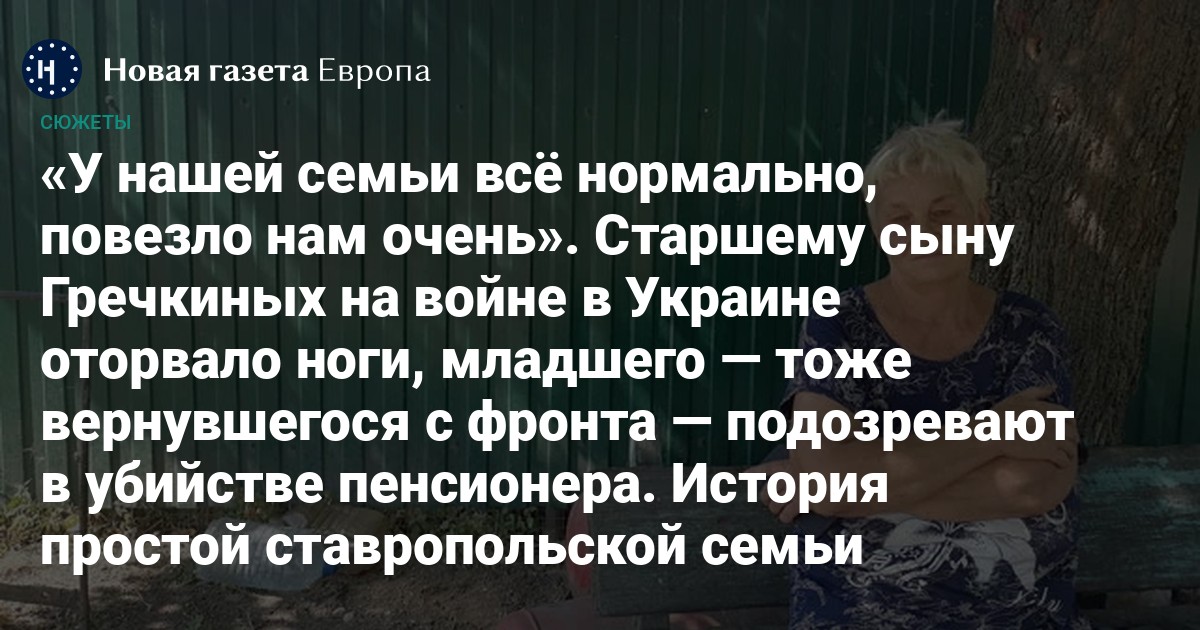 Старшему сыну Гречкиных на войне в Украине оторвало ноги, младшего — тоже вернувшегося с фронта — подозревают в убийстве пенсионера. История простой ставропольской семьи