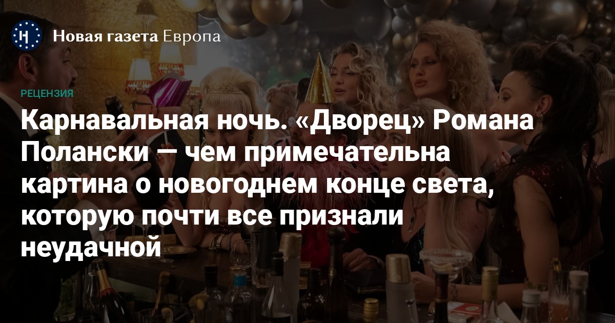 «Дворец» — ядовитая хроника наступления миллениума с десятками карикатурно выписанных действующих лиц. Самые разные богачи селятся на новогоднюю ночь в альпийском отеле, распорядитель которого должен угождать гостям, выполнять их капризы и решать проблемы в режиме цейтнота. Кинокритик Олег Тундра рассуждает о том, почему фильм Полански, почти единодушно признанный неудачным, всё равно демонстрирует витальность и политическую трезвость режиссера.