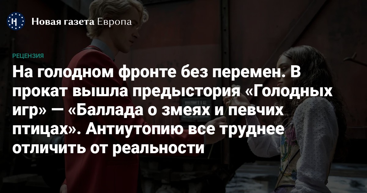 В прокат вышла предыстория «Голодных игр» — «Баллада о змеях и певчих птицах». Антиутопию все труднее отличить от реальности