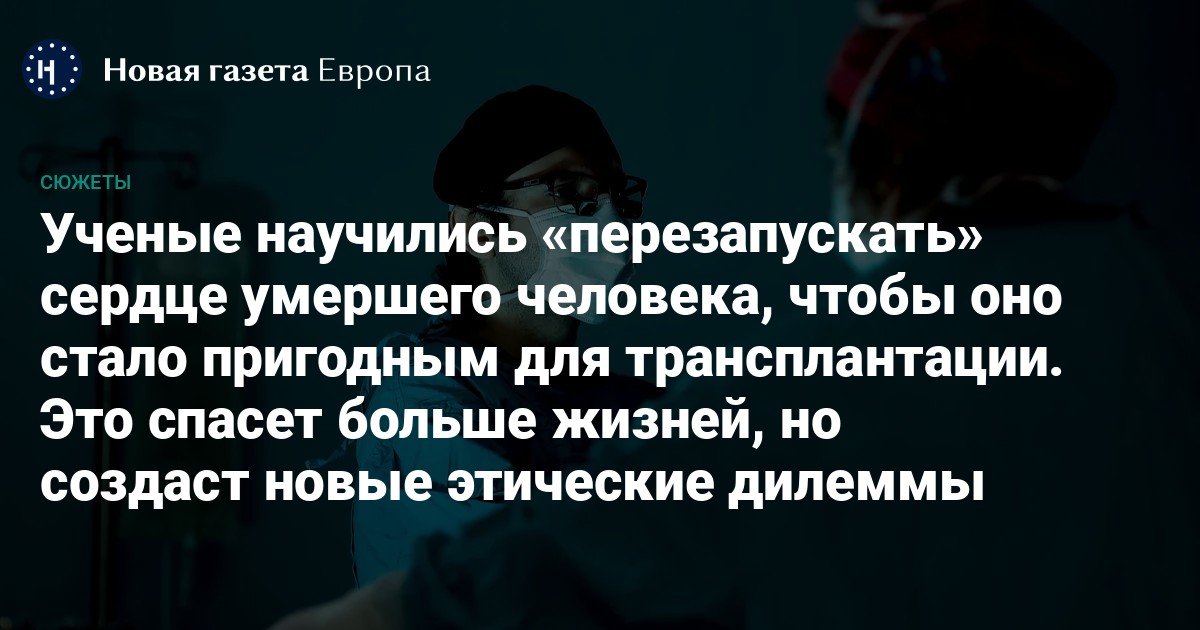 Сегодня научные достижения позволяют «оживить» сердце после смерти пациента и использовать орган для трансплантации. В июне этого года в «Медицинском журнале Новой Англии» были опубликованы результаты клинического исследования среди пациентов, которые перенесли трансплантацию сердца после его остановки у донора и последующего «перезапуска». Вопреки опасениям, выживаемость этих пациентов составила порядка 90%. Этот показатель сопоставим с показателем тех, кто получил донорское сердце, которое не прекращало работу, а было изъято у донора после гибели мозга. В условиях, когда лист ожидания донорского сердца растягивается на годы, это дополнительный шанс для тех, кто нуждается в пересадке. Но этот же шанс создает новые этические проблемы.